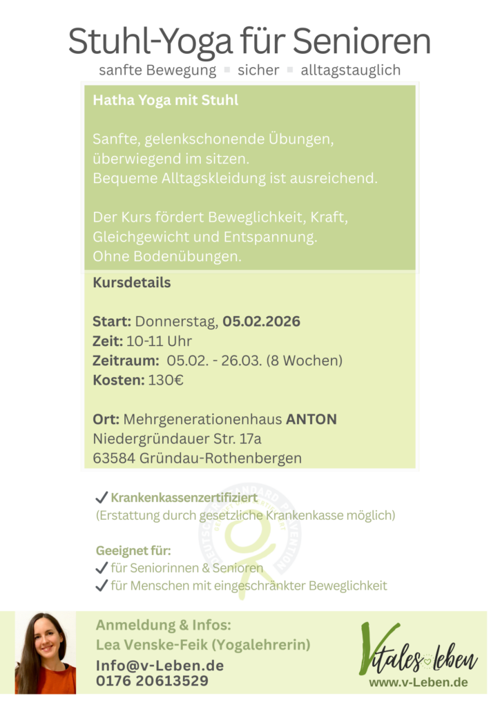 Hatha-Yoga mit Stuhl: Donnerstag,: 10-11 Uhr